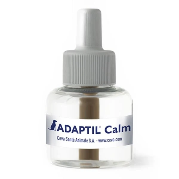 Pheromones are species-specific and have no effect on cats. Dog Appeasing Pheromone Adaptil Diffuser is also odourless to humans. Undesirable behaviours such as excessive whining and barking, and adult destructive chewing, were improved or resolved 85 and 72 per cent respectively, in clinical trials.