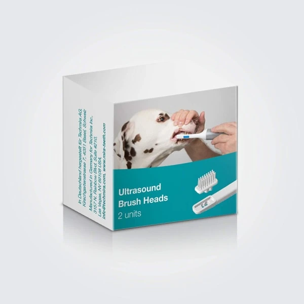 Cleany Teeth Replacement Brush Head (2 x Pack). Cleany Teeth is an innovative dental care solution for dogs. The ultra sound dog toothbrush has a highly effective cleaning effect compared to conventional dog toothbrushes (manual, acoustic, electric or rotary). The Cleany Teeth starter kit cleans your dog’s teeth effectively and stress-free from home. The Cleany Teeth dog toothbrush brushes teeth and gums and prevents tooth decay, inflammation and tartar in dogs. The cleaning effect is based on an ultrasound technology in combination with a specially developed – suitable for dogs – ultrasonic tooth gel. Cleany Teeth Replacement Brush Head (2 x Pack) for use with Cleany Teeth Toothbrush.