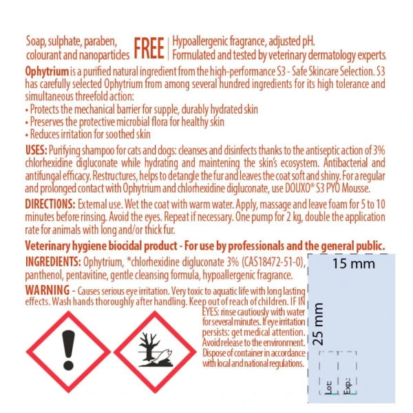 - All Douxo®S3 products are paraben, soap, sulphate, nanoparticle, colourant and phthalates free