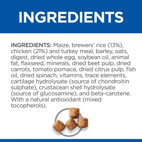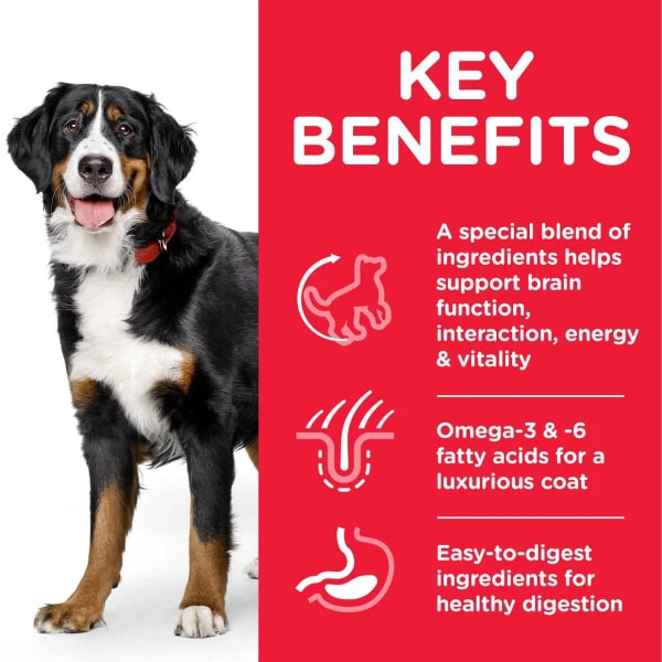 Hill’s Science Plan Senior Vitality Large Breed dog food with Chicken & Rice is scientifically developed to help fight mian effects of aging in older large dogs.