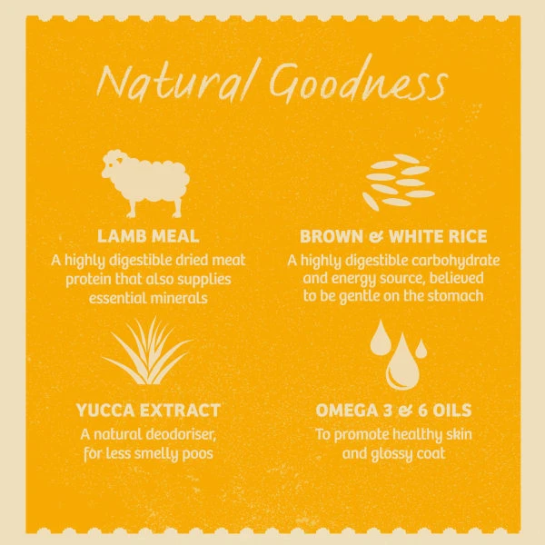 We’ve taken a handful of nature’s nourishing ingredients and combined them with flavourful lamb for highly digestible, quality protein. Then, using all our knowledge and experience, we’ve added all the vitamins and minerals your pet needs to stay happy, healthy and full of life.