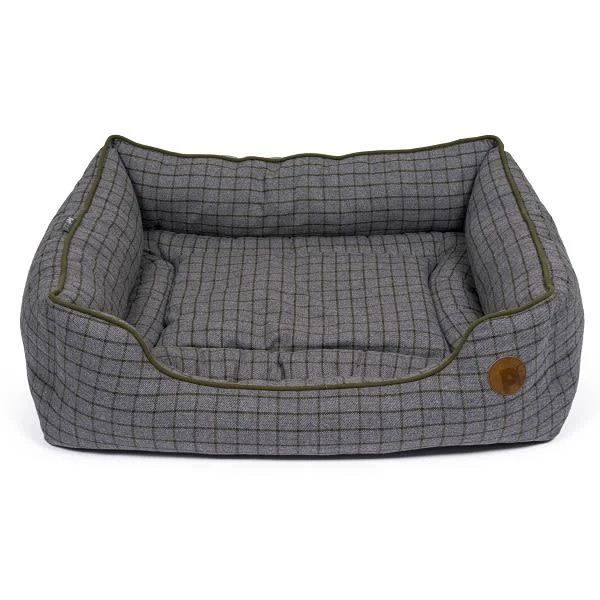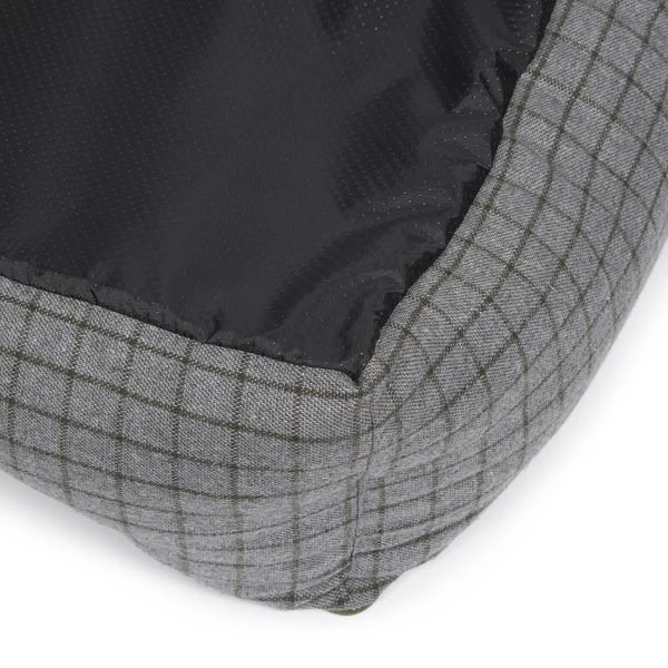 Petface Moss Green square dog bed with reversible cushion and anti slip base. It is machine washable at 30 degrees. Helping to let your pet relax and sleep comfortably by keeping them warm and giving a feeling of security.