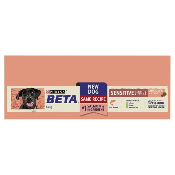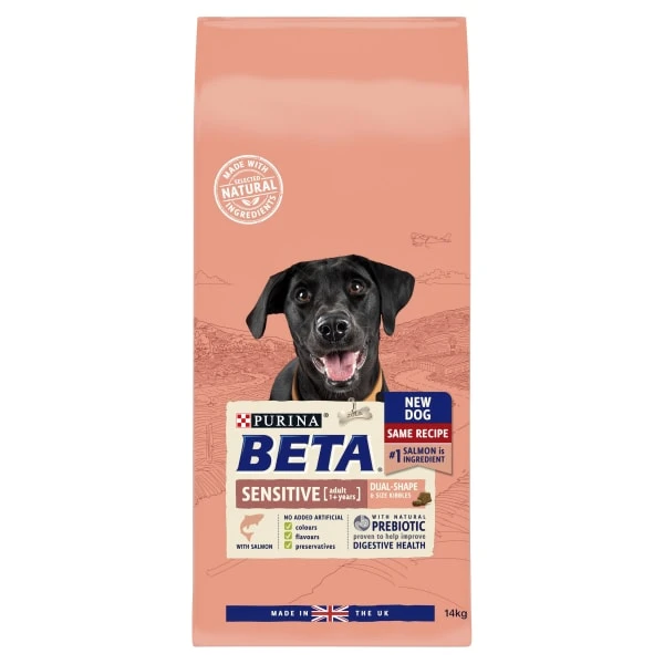 We know that some dogs are more sensitive to food than others, but that does not have to stop your dog from living an active and curious life. That is why our Purina® Beta® tailored nutrition sensitive food is specially formulated with salmon, a high quality protein which helps to support good digestion, as well as with omega 3 & 6 fatty acids that helps reduce possible discomfort in your dog’s sensitive skin. It is also specially formulated with selected natural ingredients and a natural prebiotic to help support digestive health that help your sensitive dog get the most out of his day. And all this without including any added artificial colours, flavours or preservatives.