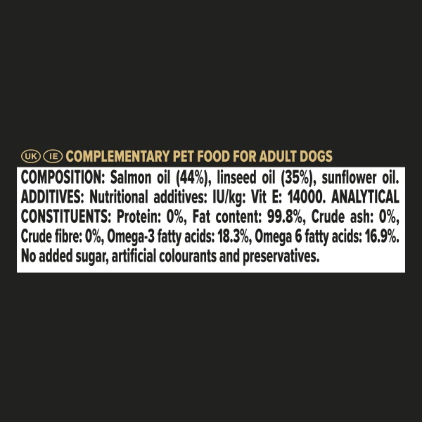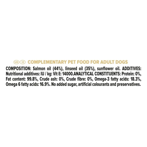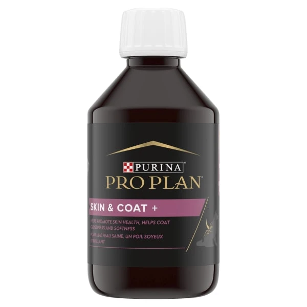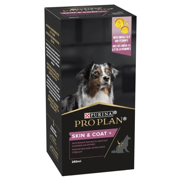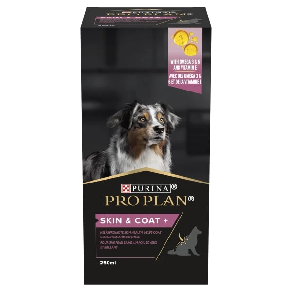 Pro Plan Dog Skin & Coat+: Dog skin & coat supplement in one, complementary petfood for adult and senior dogs. Oil format.