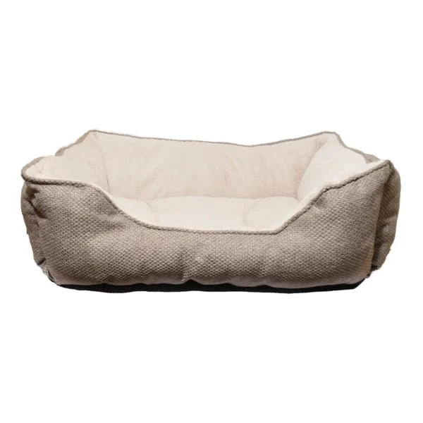 Luxurious truffle outer material complemented by a soft teddy bear fleece inner fabric. Stylish and modern. Tough stitching gives bed durability assisted by non-slip base. Thick cushioned sides. Machine washable at 30 degrees.