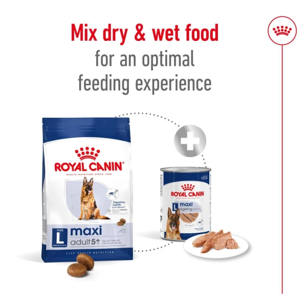 Ageing in dogs can vary, but when your large dog reaches the approximate age of 5, the first signs of aging may begin to show. That’s why it’s important to remember that at every stage of your dog’s life, a balanced diet is important to support its good health. Royal Canin® Maxi Adult 5+ dog food is formulated with all the nutritional needs of your middle-aged dog in mind and is suitable for large dogs aged 5 and over, with an adult weight ranging between 26kg-44kg. Middle-aged large dogs can be sensitive to weight gain at this stage, making it even more important to monitor your dog’s daily intake allowance and help prevent overeating. Royal Canin® Maxi Adult 5+ contains a unique and balanced blend of very high-quality protein and dietary fibre, meaning each serving gives your dog what it needs to maintain a healthy weight and support optimal digestion. Royal Canin® Maxi Adult 5+ is specifically formulated to help support large breed dogs during this stage of life by supporting its bones, ligaments and joints – meaning your dog can comfortably support its weight and maintain and active lifestyle. Although your dog may now be showing the first signs of aging, it will still have plenty of energy left. That’s why Royal Canin® Maxi Adult 5+ contains an adapted content of nutrients, including an exclusive complex of antioxidants to help neutralise free radicals and help your dog maintain vitality and a healthy metabolism. At Royal Canin® we’re committed to providing nutritional solutions to your pet’s needs. All of our products undergo an extensive quality control process in order to guarantee the optimum quality of food as well as catering to your dog’s specific dietary requirements and lifestyle. This means that when your dog eats Royal Canin® Maxi Adult 5+, it’s getting a complete and balanced diet.