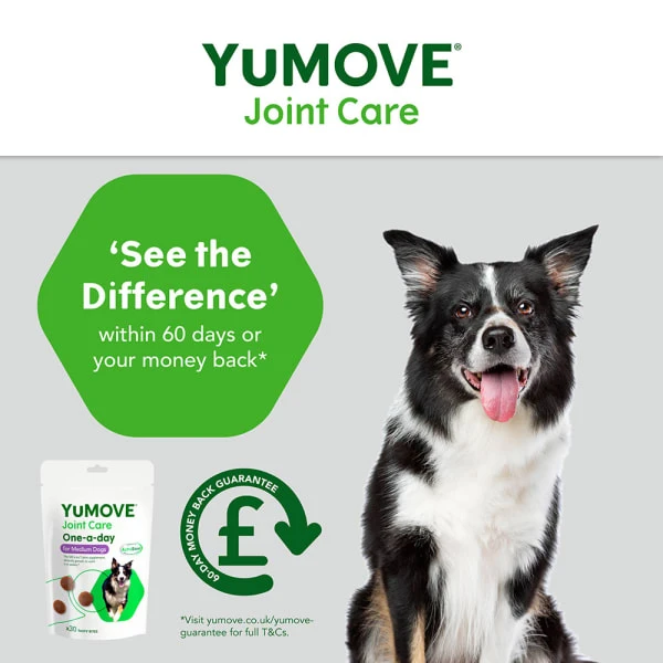 Give your dog their mojo back with YuMOVE Joint Care One-a-day for Medium Dogs, previously YuMOVE One-A-Day. This clinically proven formula is packed with high-quality ingredients to help your dog play like a puppy.