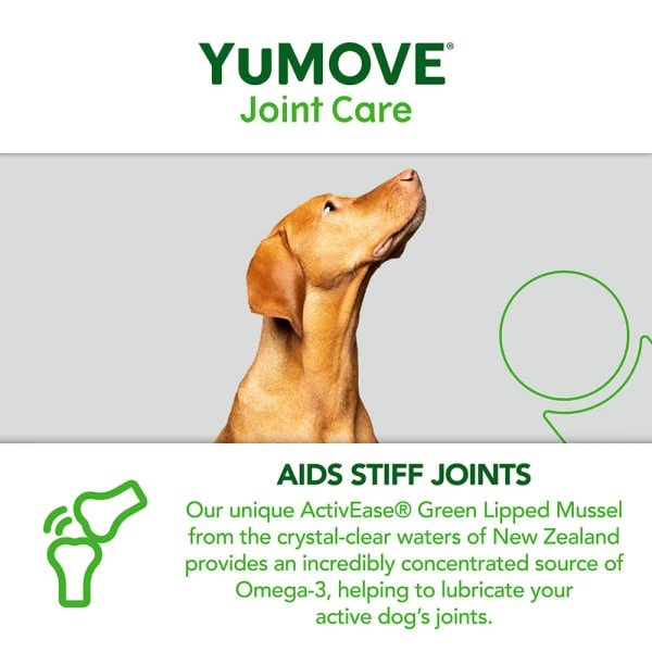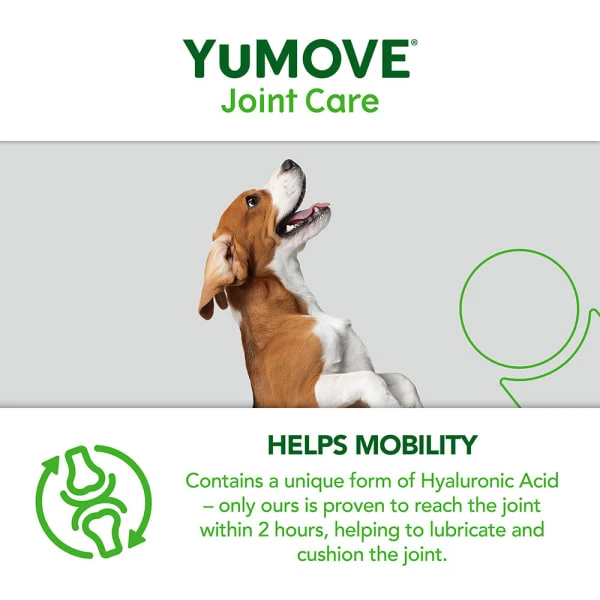 YuMOVE’s unique form of ActivEase® Green Lipped Mussel (GLM) contains higher levels of Omega-3 fatty acids than other standard GLM powders. It’s a similar story with Hyaluronic Acid. YuMOVE’s particular version is proven to reach your dog’s joints within just 2 hours. Combined, the unique ingredients in YuMOVE deliver the optimal recipe to aid stiff joints.